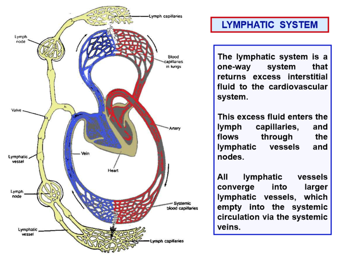 Describe the lymphatics and it flow.