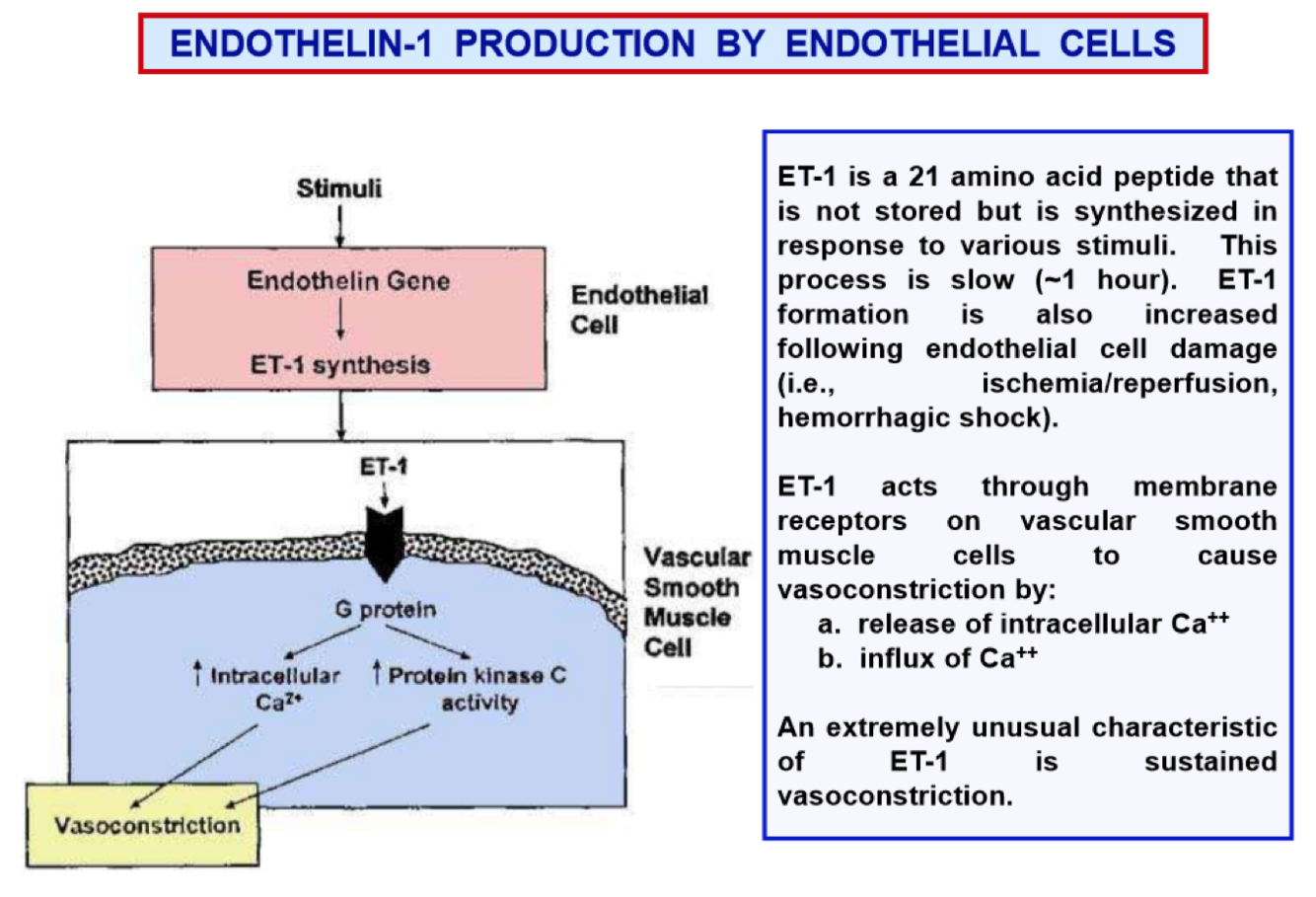 Endothelin-1 is a peptide that causes vascular smooth contraction and vasoconstriction by a release of intracellular Ca++ and an influx of Ca++.