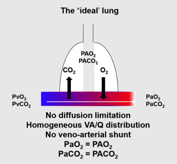 The efficiency of the lung is greatest when the ventilation/perfusion (VA/Q) ratio is the same in all regions of the lung.