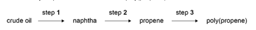 The three key steps in the manufacture of poly(propene) from crude oil are shown. State the name of step 2