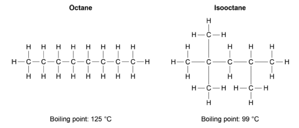 Outline how distillation is used to separate a mixture of octane and isooctane