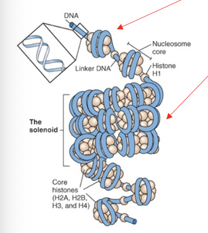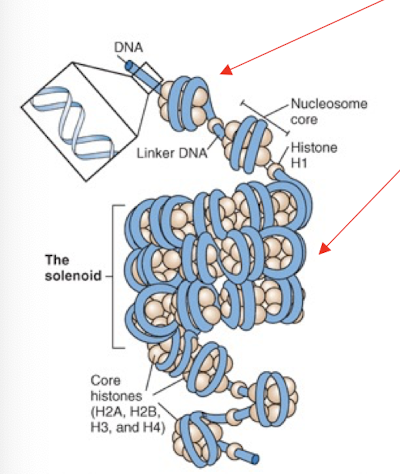 - Composed of 8 histones and 140 base pairs