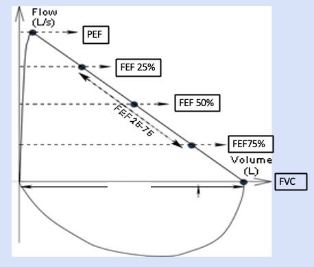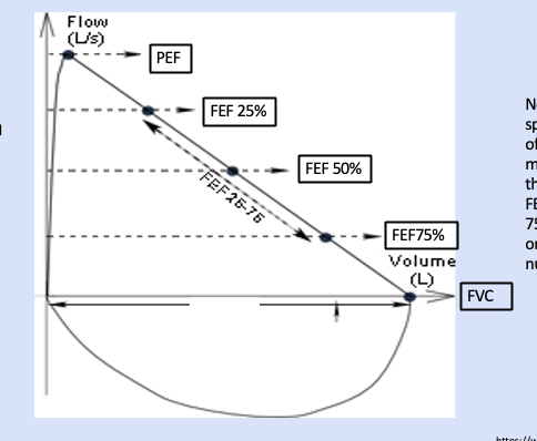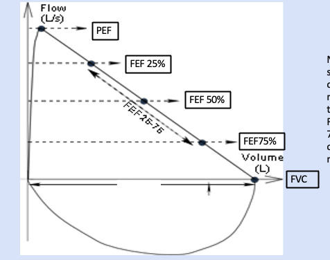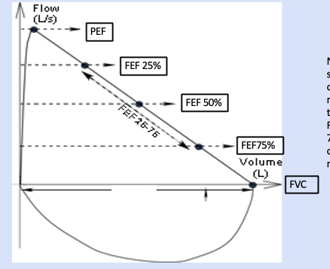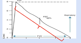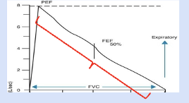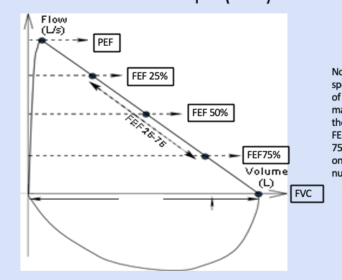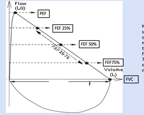 Steep rise = quick emptying of lungs.