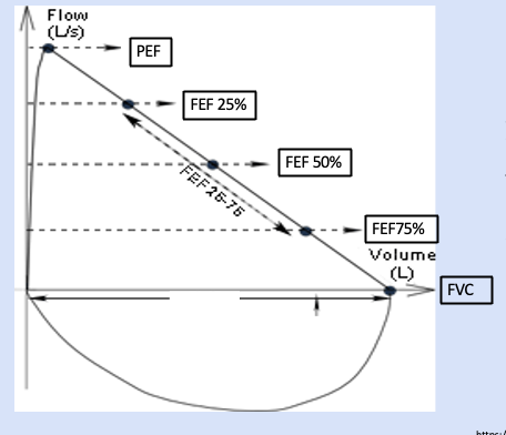 Define FEF 25%, FEF 50%, and FEF 75%.