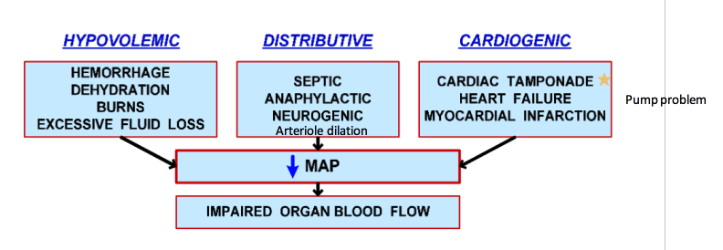 Decreased MAP and impaired organ blood flow