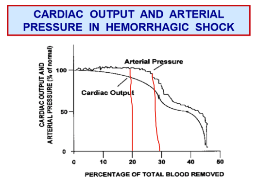 CO begins to change after 20% of blood is lost.