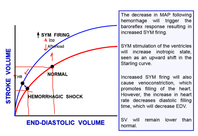 What are all of the factors that alter and adjust SV in hemorrhagic shock?