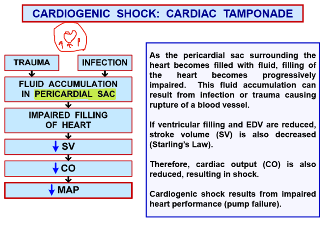 Cardiac tamponade, heart failure, MI