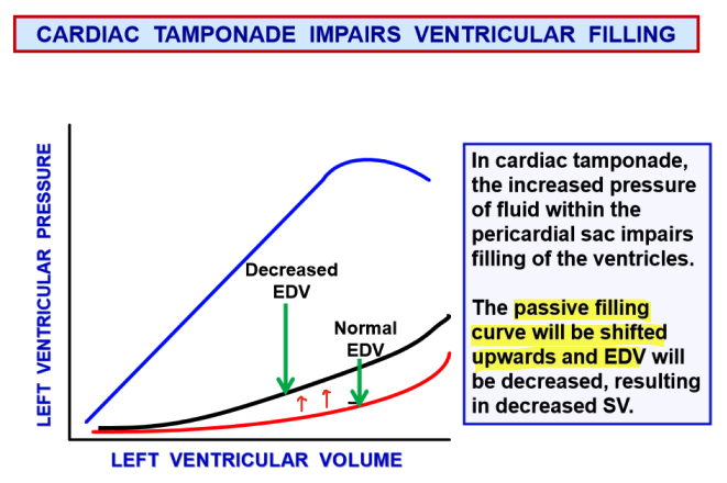 What curve utilized in P-V loops is affected by cardiac tamponade?