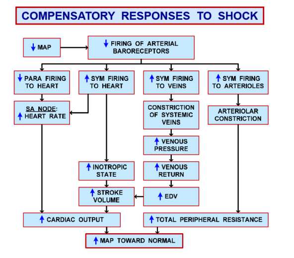 What are the compensatory responses to shock?