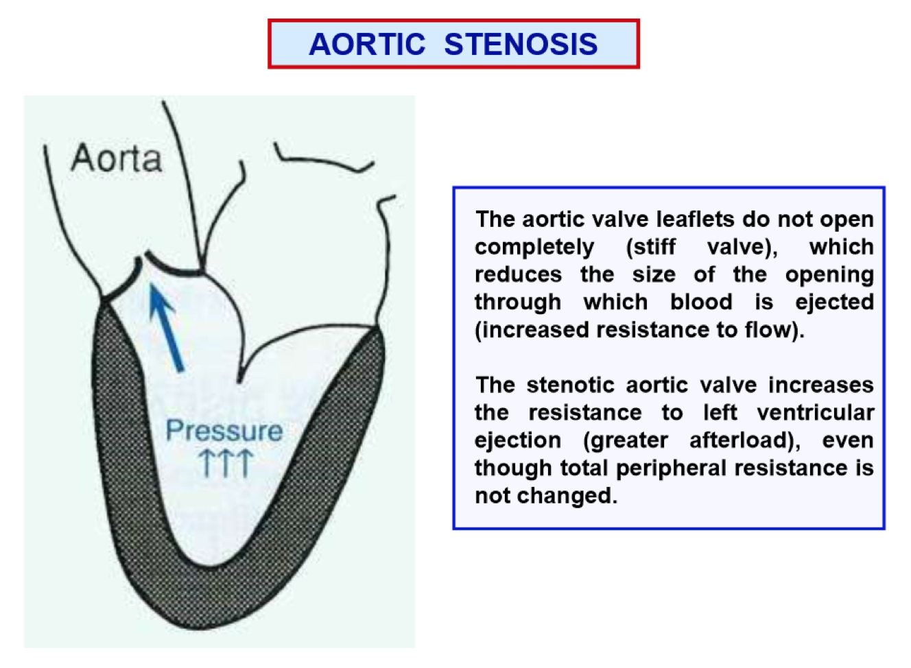 The valve leaflets do not open - reducing the size of the opening through which blood is ejected. This increases resistance to LV ejection.