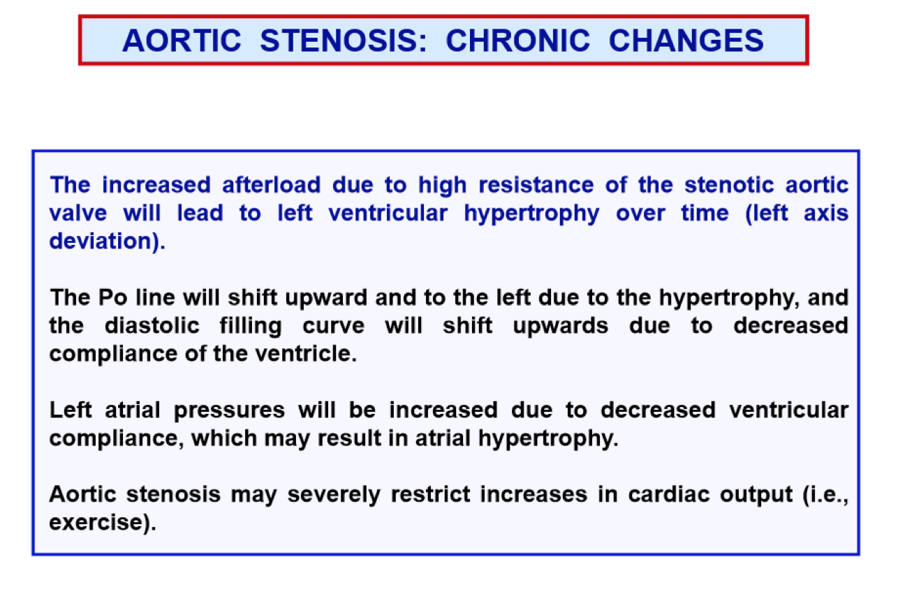 Increased afterload due to high resistance of the stenotic aortic valve will lead to left ventricular hypertrophy over time.
