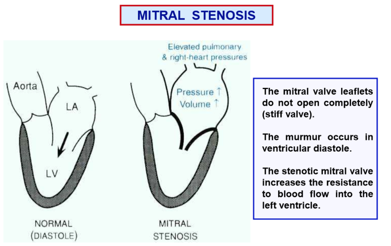 The mitral valve doesn’t open completely. This causes a diastolic murmur.