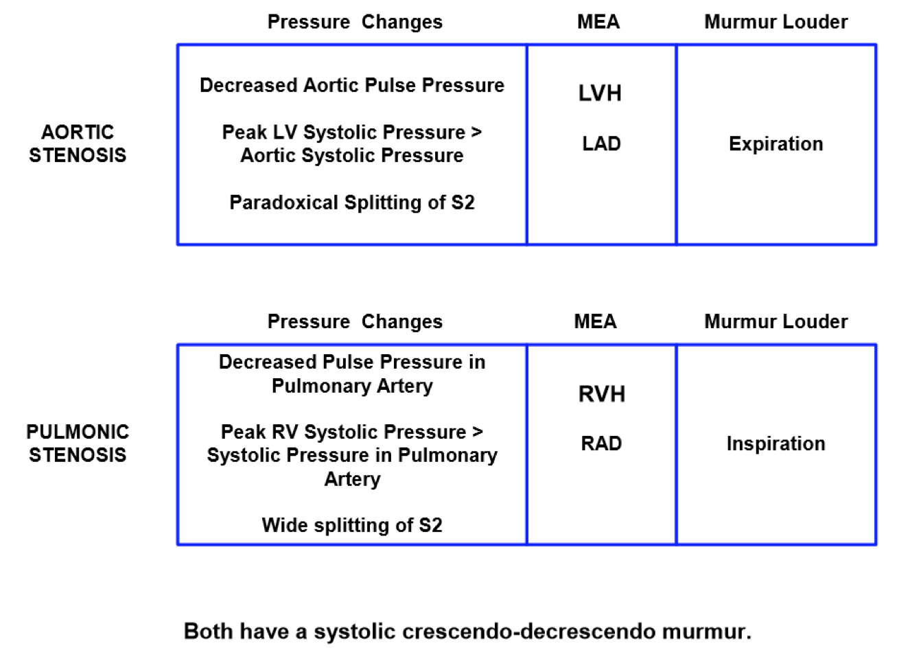 What is the difference between aortic strenosis and pulmonic stenosis?