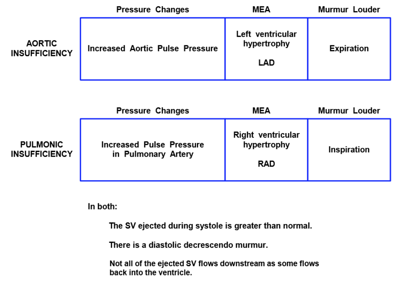 How do aortic insufficiency and pulmonic insufficiency compare?