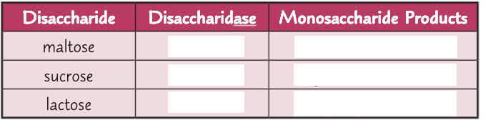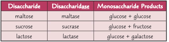 Hydrolysis of disaccharides (e.g. maltose, sucrose, lactose) into monosaccharides (e.g. glucose, fructose and galactose)