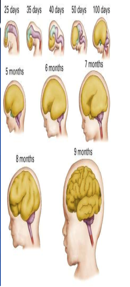 What is occuring in the human brain at these times of development: