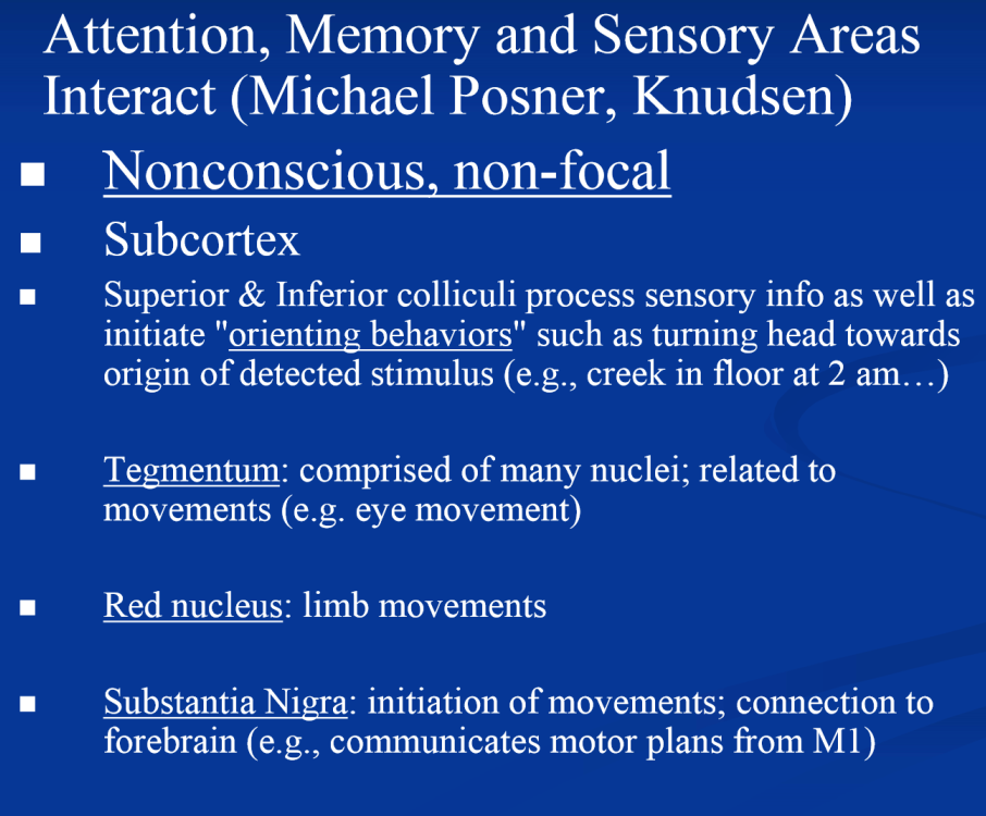 What areas of the CNS are involved in non-conscious, non-focal attention?