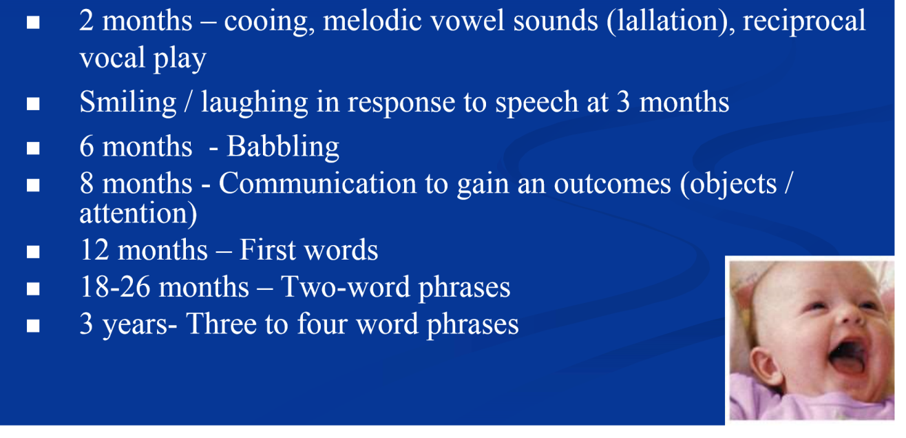 What are some of the stages of language development and when do they occur throughout early life?