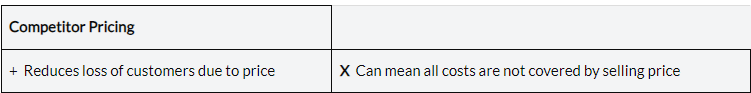 Competitor pricing does the reverse, and means prices are set close to competitors.