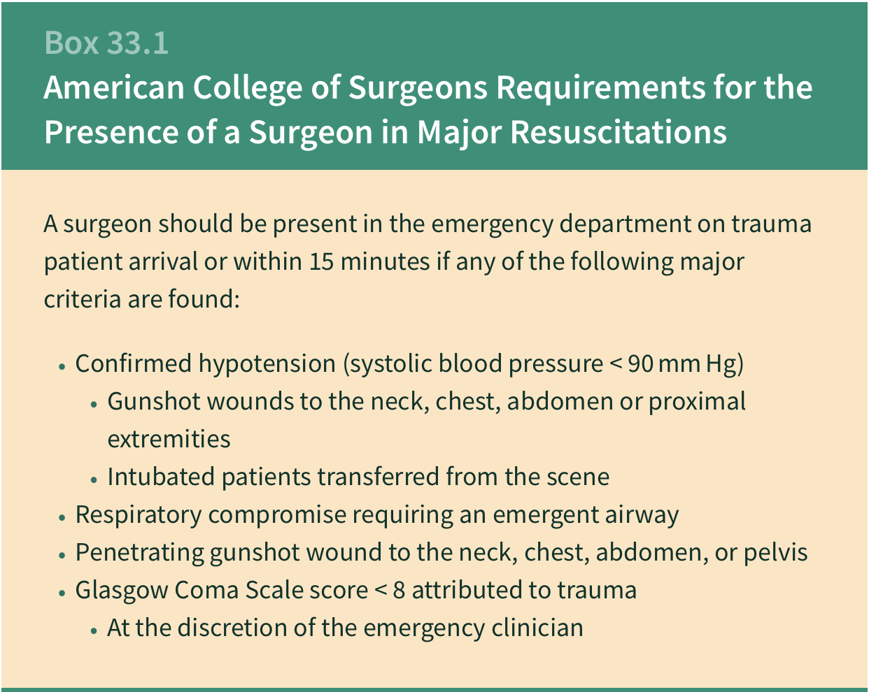 Quelles sont les indications d’avoir un chirurgien dans le département d’urgence dans les 15 minutes suivant l’arrivée d’un polytraumatisé?