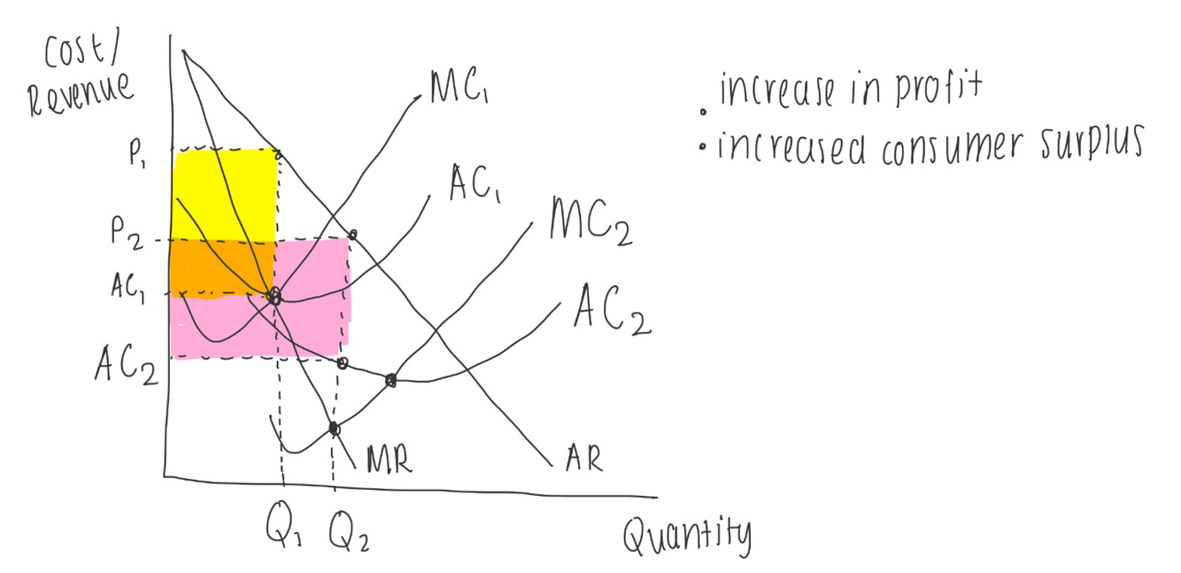 increasing returns from expanding the scale of production in the long run leading to lower LRAC