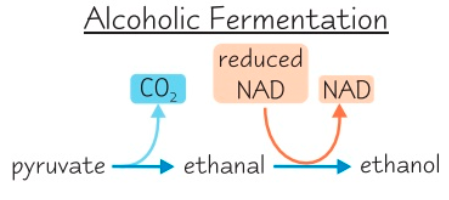 Reduced NAD reduces/donate H ions to pyruvate to ethanol