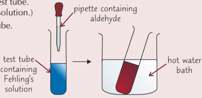 Describe a test for an aldehyde or ketone using Fehling’s (or Benedict’s) solution