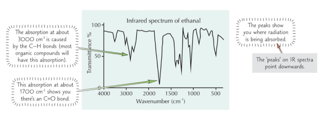 Infrared spectrometer produces graph that shows what frequencies of radiation molecules are absorbing