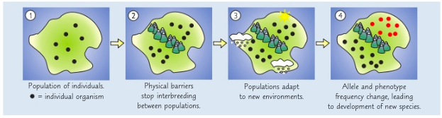 Occurs ∵ changes in alleles and phenotypes in some individuals prevent breeding successfully with individuals without these changes