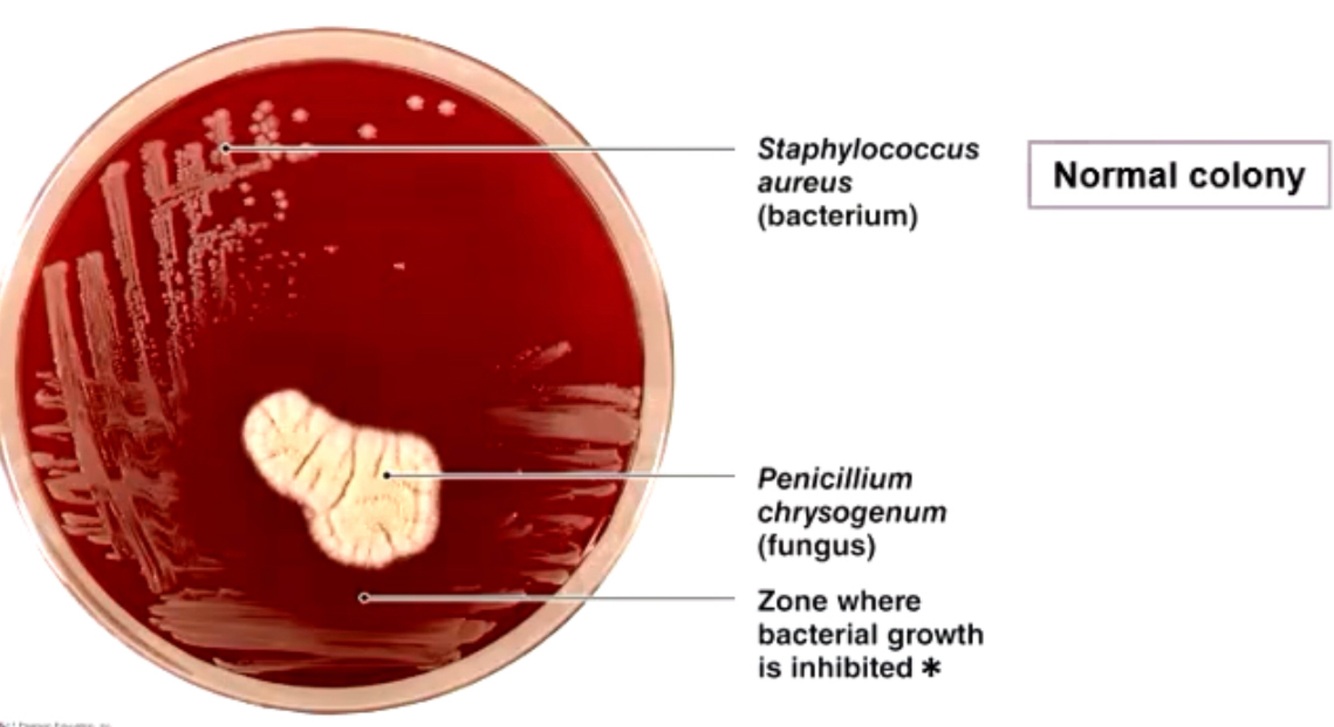 In 1982 Alexander Fleming observed that colonies of the bacterium staphyloccoccus bacteria could be destroyed by the mold penicilium notatum
