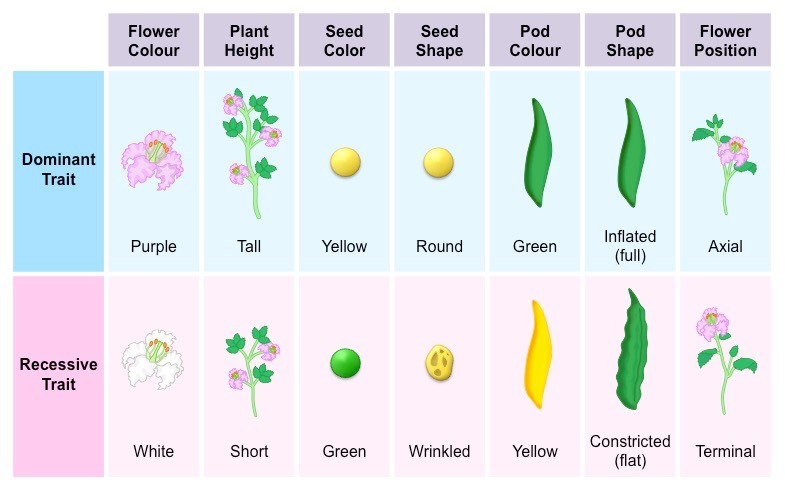 Diagram showing Mendel’s garden pea plant experiment