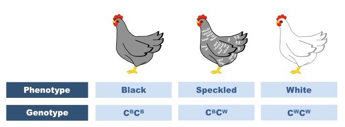 Diagram of co-dominance (chicken feathering)