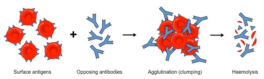 Diagram showing the consequence of incompatible blood transfusion