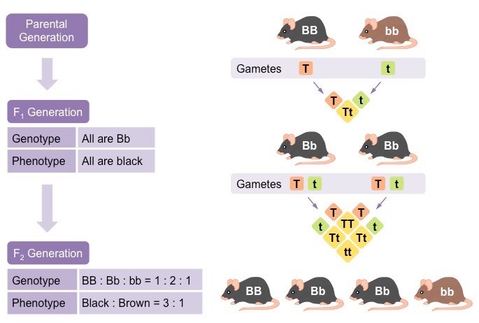 Diagram of complete dominance (mouse coat color)