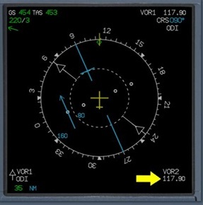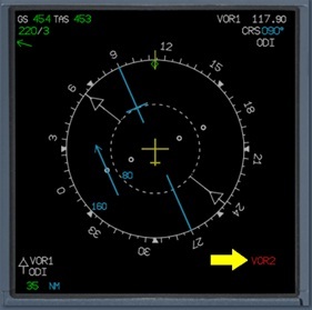 According to the ND, what are VOR 1 and VOR 2 tuned to?