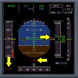 An ILS approach has been initiated, but the “LS” button is not pressed.