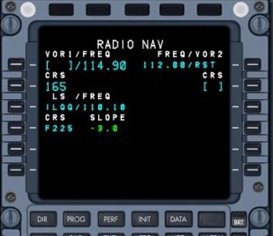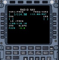 The RADIO NAV page displays navaids tuned by the FMGS or flight crew.