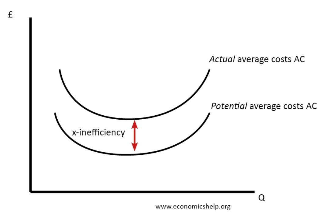 -It often occurs where there is a lack of competition so firms have little incentive to cut costs.