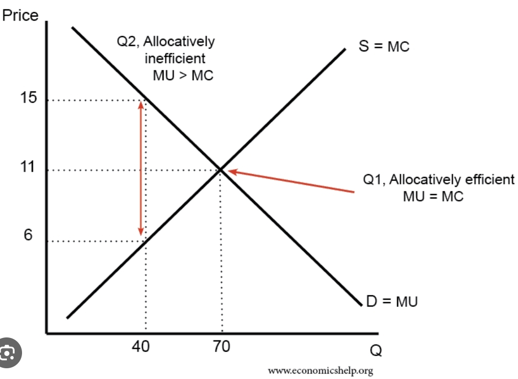 -Achieved when resources are used to produce goods and services which consumers want and value most highly and social welfare is maximised.