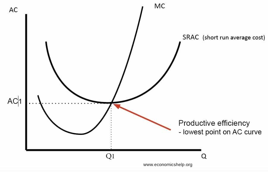 -For example, the minimum point on the AC curve may be at 100 goods at a cost of £5 each.