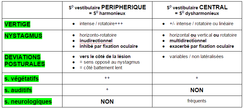 Diagnostic syndromique (central vs périphérique)