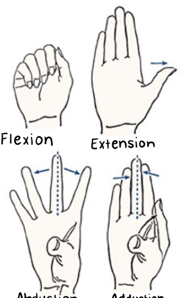 The fingers can undergo flex/ext at MCP and IP joints