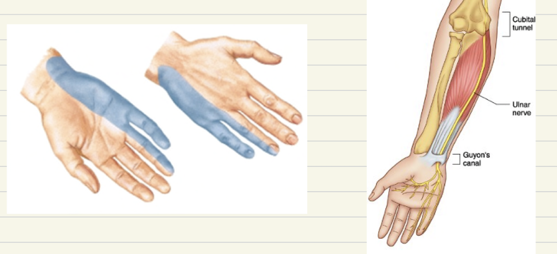 - parasthesia of medial 1.5 digits