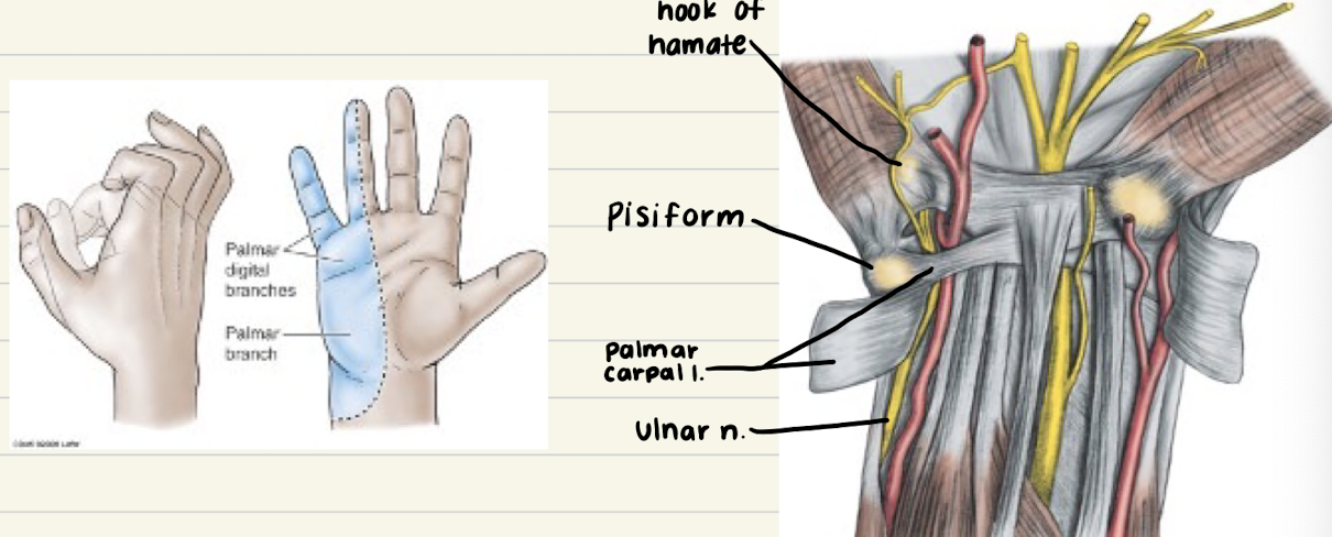 - all of palmar hand except ulnar area