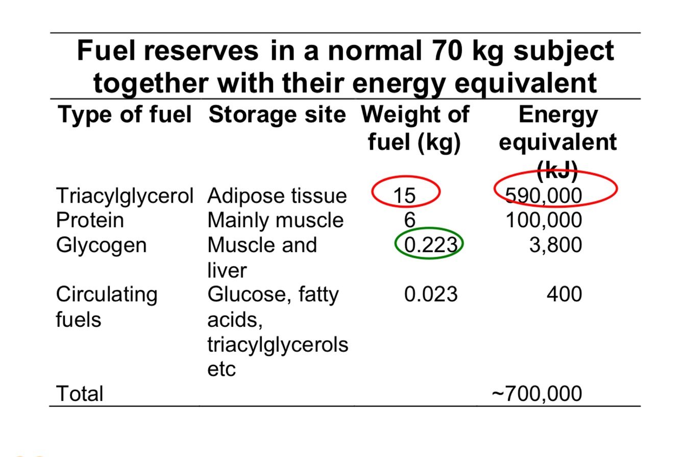 Oxidising about 500 g of fuel (carbohydrate, fat and protein) generates about 70 kg of ATP; 10,000 kJ