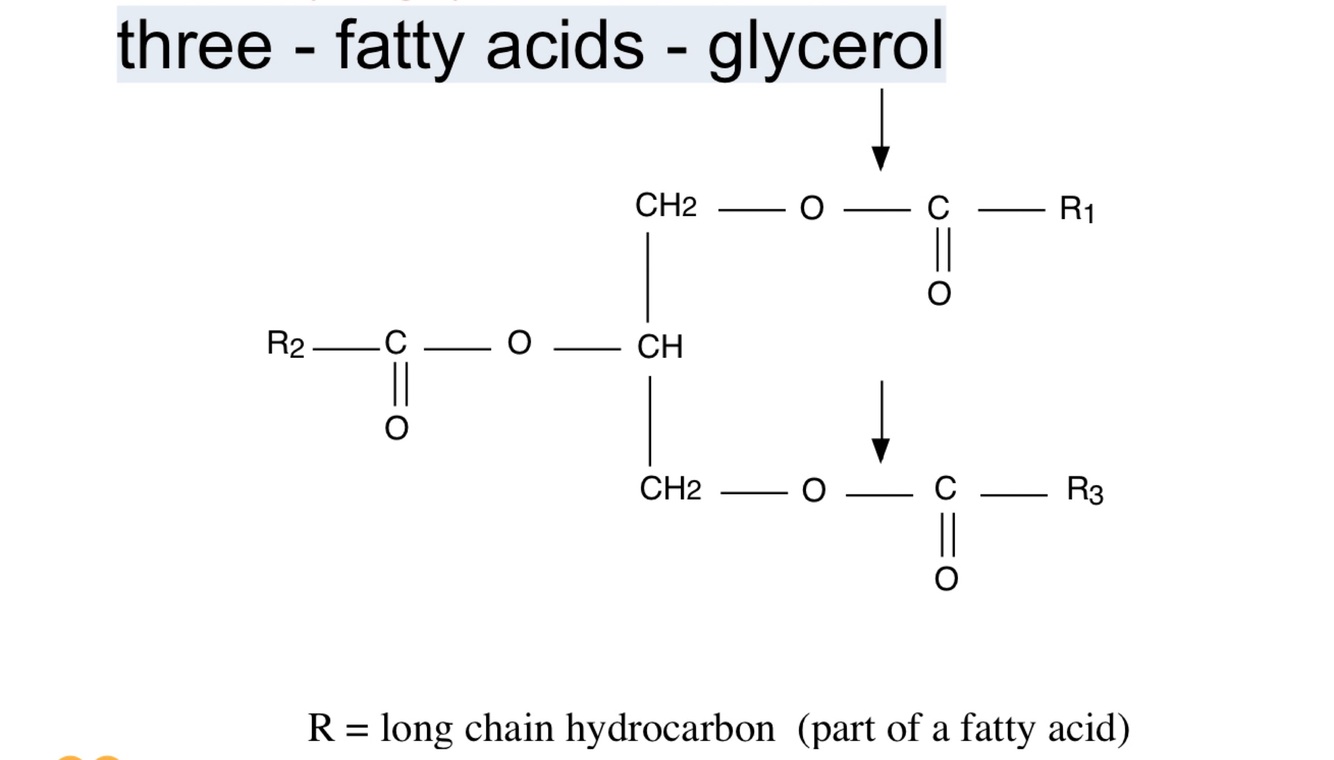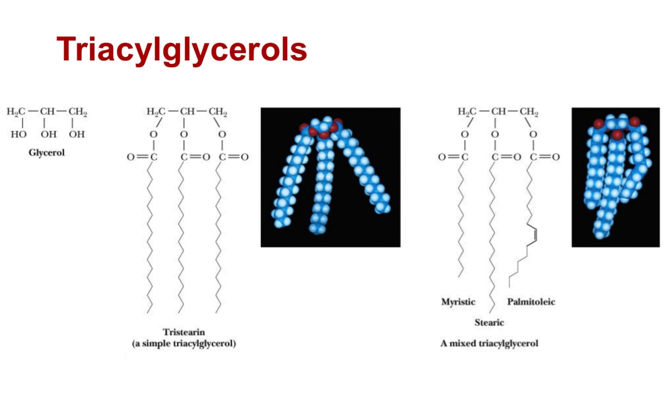 Triclyglycerol (between acidic fatty acid end and glycerol)