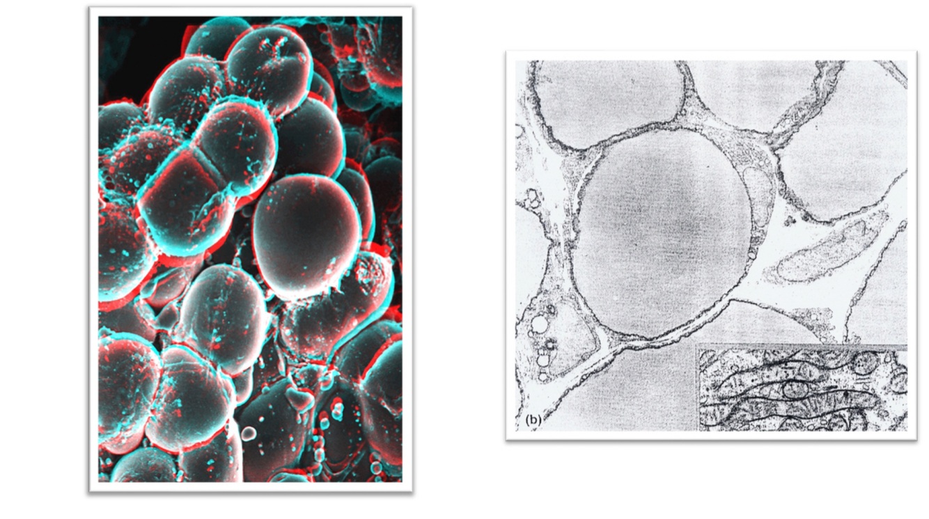 In adipose tissue cells Triaglycerol pushes cell organelles to the side