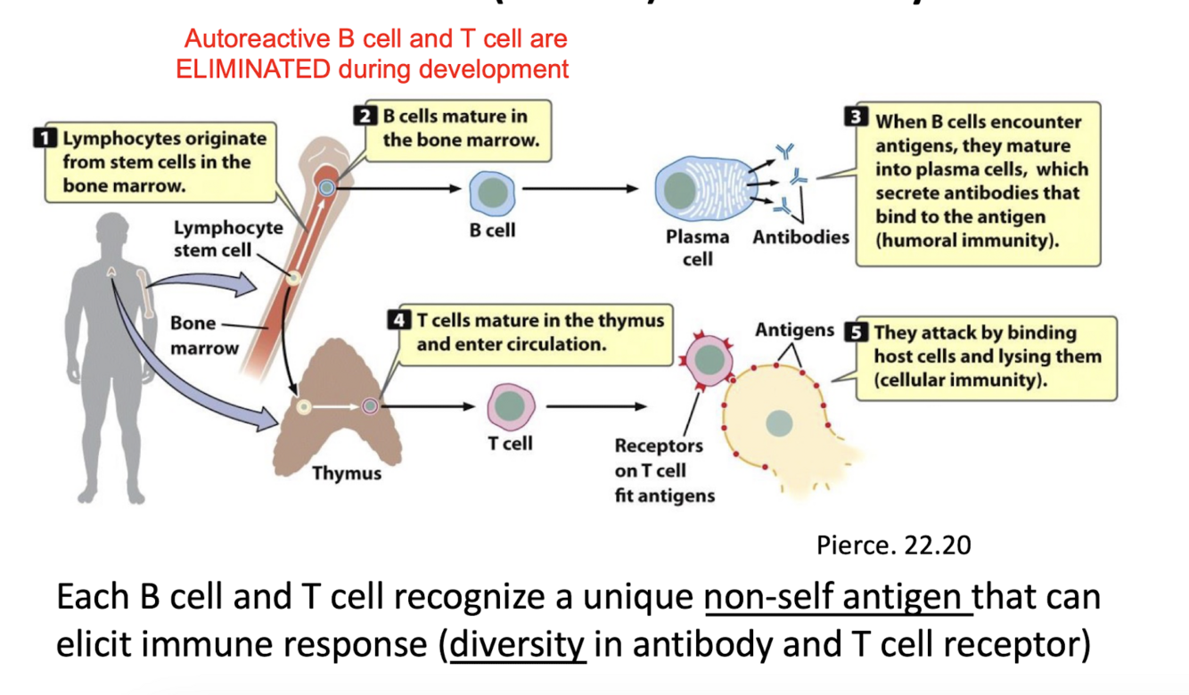 specialized lymphocytes called T cells produce TCRs that recognise and bind antigens found only on the surface of the body’s own cells