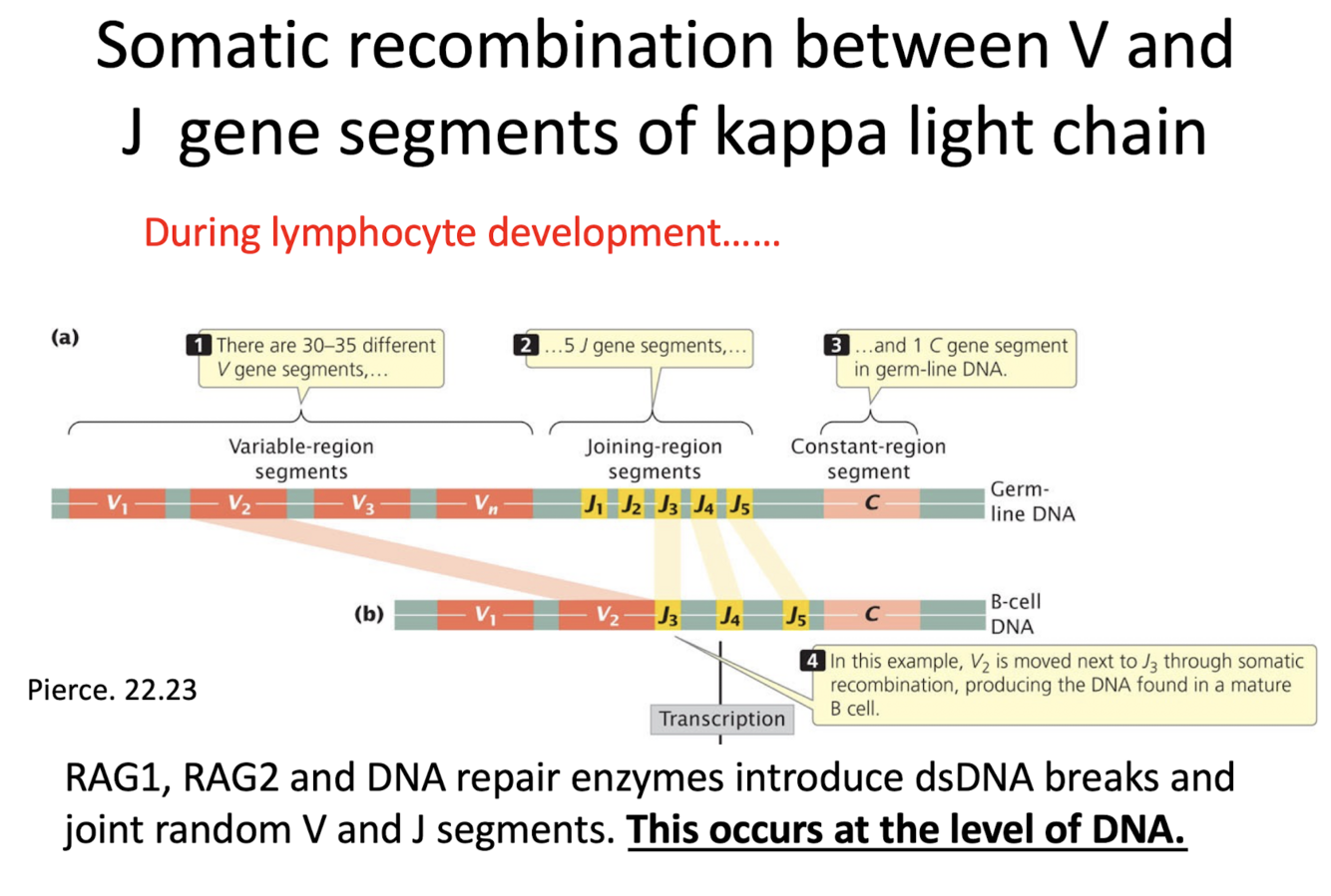 how does somatic recombination happen to make new combinations of V and J gene segments of the kappa light chain?